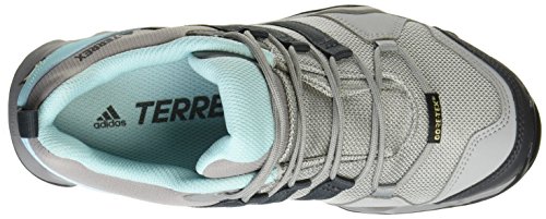 EIN LEICHTER, STRAPAZIERFÄHIGER SCHUH FÜR UNWEGSAMES GELÄNDE. Adidas Terrex AX2R GTX Damen Walkingschuhe – AW17 Dieser Outdoor-Schuh ist für den vielseitigen Einsatz im Gelände gemacht. Er hat ein atmungsaktives Obermaterial mit GORE-TEX Futter, das deine Füße angenehm trocken hält. Die vorgeformte Einlegesohle umschließt den Fuß passgenau und ADIPRENE im Fersenbereich bietet besonders guten Aufprallschutz. Die TRAXION Außensohle sorgt für hervorragenden Grip auf Felsen und Wanderwegen – auch bei nassen Bedingungen.