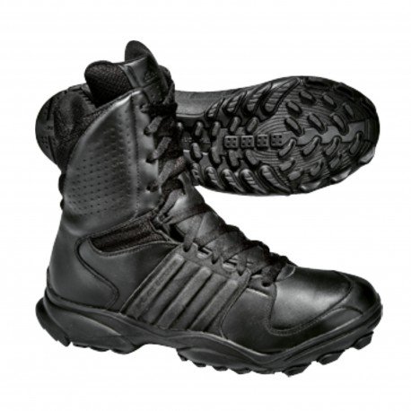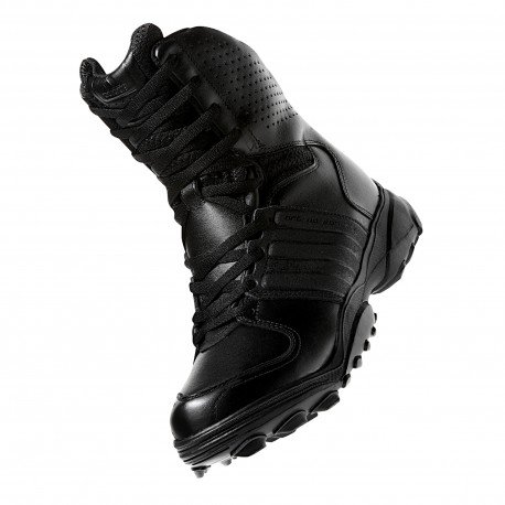 Farbe: schwarz Größen: (EU 36 – 50), UK 3,5 – 14 – Verfügbar in 1/2 Größen Gewicht 1 Stiefel in Gr. 43: 724 g Schafthöhe Gr. 43: 21 cm Am 19.02.2008 durch Prüf- und Forschungsinstitut Pirmasens e.V. zertifiziert als Berufsschuh gem. EN347/O2 (rutschhemmend, antistatisch und benzinresistent) Der Schaft besteht aus Leder, Meshmaterial und Membran: Das CLIMAPROOF-Material mit Membran ist wasserresistent und gleichzeitig atmungsaktiv (75% des Schafts = Membran mit verschweißten Nähten). > Vollnarbiges, hydrophobiertes Rinds-Leder sorgt für Wasserresistenz bei höchstem Komfort > Der perforierte Schaftkragen ermöglicht zusätzliche Atmungsaktivität, Luftzirkulation und Flexibilität. >Die Sattelkonstruktion unterstützt den Mittelfuß durch hochabriebfestes Leder mit spezieller Beschichtung (Helcor/adiTUFF). Dadurch wird beim fast roping der Schaftverschleiß extrem minimiert. Einlegesohle: >Die herausnehmbare, anatomisch geformte EVA-Einlegesohle mit offenporiger, geruchsbindender und schweiß-absorbierender Ortholite – Struktur bietet ein optimales Tragegefühl. >Die EVA- Sohle mit Carbonpartikel stützt das Fußbett. Außensohle: >Die Außensohle gleicht einer Schalensohle. >adiPRENE im Fersenbereich gewährleistet eine optimale Dämpfung und verringert gefährliche Aufprallkräfte. >Das abriebarme adiTUFF/Helcor-Material ist auch an der Innenseite der Sohle angebracht. >Die Anordnung der Stollen sichert schnelle Drehbewegungen, bremst beim Bergablaufen und erleichtert durch einen Schaufeleffekt das Bergauflaufen. >Die Sohle ist resistent gegen Öl und Benzin gemäß DIN EN ISO 20345, 20346, 20347. >Die Sohle erfüllt die Antistatik-Norm DIN EN 344-1, 4.3.4 Der GSG9.2 ist relativ eng geschnitten – deshalb im Zweifelsfall bitte eine halbe Nummer größer bestellen