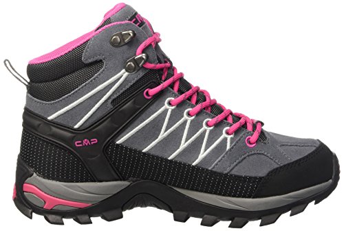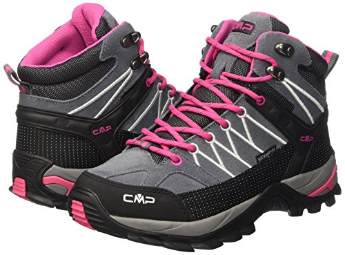 CMP RIGEL MID. Wasserdichte Wanderschuhe mit zusätzlich hoch atmungsaktiver ClimaProtect-Membran; Obermaterial aus Wildleder mit Textilbesätzen; Schnürung mit gesteppten Ösen und Metallhaken; Zehenkappe aus robustem Gummi; verstärkender Fersenrahmen; Zunge und Schaftrand weich gepolstert; Textilfutter; feuchtigkeitsableitende und antibakterielle Ortholite-Einlegesohle; Einstiegslasche; dämpfende EVA-Zwischensohle; stark profilierte FullOn Grip-Profilsohle aus Gummi; Gewicht: ca. 421 g/Gr. 38 (einzeln).