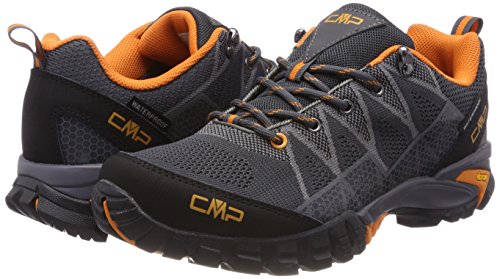 Der revolutionäre Trekkingschuh aus Stoff sorgt für maximale Leichtigkeit und maximalen Komfort. Das Obermaterial besteht aus Polyesterfäden mit unterschiedlicher Stärke, die in verschiedenen Strukturen und Dichten miteinander verflechtet wurden, um die am stärksten belasteten Bestandteile oder jene Bestandteile, die dem Fuß besonderen Halt verleihen müssen, zu verstärken, und allen Teilen, die keine besondere Funktion haben, mehr Leichtigkeit zu verleihen. Für mehr seitlichen Halt wurde unter Erhitzung eine transparente Folie angebracht, während zum Schutz des Fußes und für die Stabilität zwei Elemente aus „Action Leather“ verarbeitet wurden. Die Vibram-Sohle garantiert perfekten Grip, um herausfordernde Strecken zu bewältigen, vor allem wenn sie schwer sind.Clima ProtectAus unserer großen Erfahrung mit Sportbekleidung ist eine wasserdichte Membran speziell für Schuhe mit der Technologie Clima Protect entstanden. Integriert in diese Membran ist ein besonderes, thermisches Laminat, das kein Wasser eindringen lässt und gleichzeitig überaus atmungsaktiv ist. Dazu hat die Membran Mikroöffnungen, die verhindern, dass Wassermoleküle in das Innere vordringen können, aber gleichzeitig den Austritt der Wasserdampfmoleküle ermöglichen. Mit diesem System kann CMP maximalen Komfort und angenehmes Fußklima bei allen Outdoor-Aktivitäten garantieren.VibramVibramsohlen sind aus einer besonderen Gummimischung hergestellt, die einen enorm guten Gripp garantiert. Auch die Lage, Anordnung, Form und Höhe des Profils der Sohle ist genauestens durchdacht, und für den jeweiligen Schuheinsatz optimiert. In der Regel besitzen alle Berg-, Wander-, und Trekkingschuhe der gängigen Hersteller heute eine Vibramsohle. Größeninformation: Größe fällt normal aus Passform: normal geschnitten Details:…
