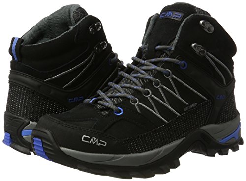 CMP RIGEL MID. Knöchelhohe Wanderstiefel mit wasserdichter und atmungsaktiver ClimaProtect-Membran; Obermaterial aus Wildleder mit Textilbesätzen; Schnürung mit gesteppten Ösen und Metallhaken; Zehenkappe aus robustem Gummi; verstärkender Fersenrahmen; Zunge und Schaftrand weich gepolstert; mit Textil gefüttert; feuchtigkeitsableitende und antibakterielle Ortholite-Einlegesohle; Einstiegslasche; dämpfende EVA-Zwischensohle; stark profilierte FullOn Grip-Profilsohle aus Gummi; Gewicht: ca. 496 g/Gr. 42 (einzeln).