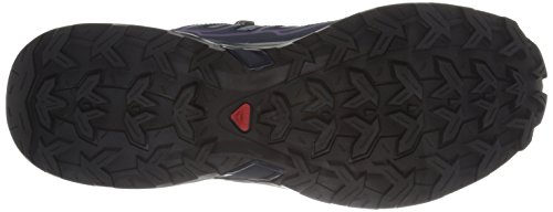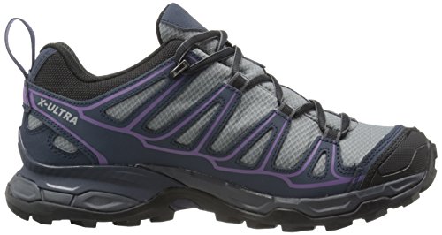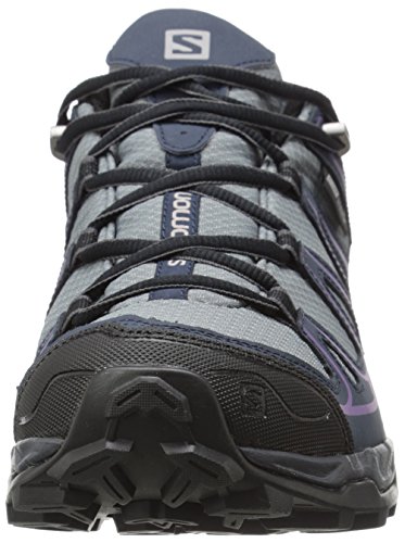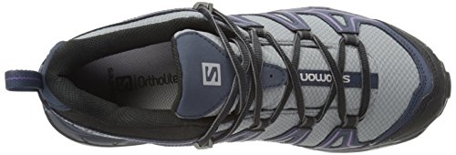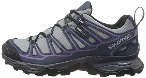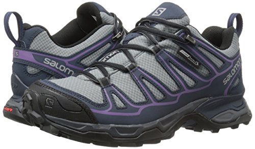 SALOMON X ULTRA PRIME CS WP W [PEARL GREY DEEP BLUE RAIN PURPLE] Obermaterial Synthetik, Textil Innenfutter Textil Sohle Synthetik Sensifit-System OrthoLite Innensohle stabilisierende Fersenkappe Schlammschutzrand Advanced Chassis wasserdichte Climashield Waterproof Membran schnell trocknendes Innenfutter High Traction Contagrip