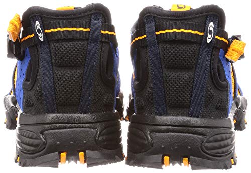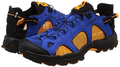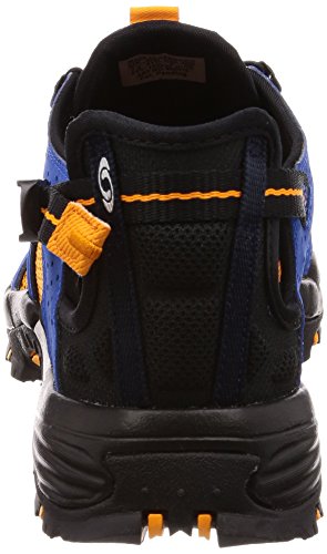 aus Lederimitat und Mesh, Schnellschnürsystem, optimaler Schutz des Fußes durch geschlossene Zehenkappe und Halt gebende Sohlenkonstruktion mit Drainage-System, druckdämpfendes und geformtes EVA-Fußbett, antibakterielle Behandlung mit Agion, umklappbare und einstellbare Ferse, Contragrip-Sohlensystem, rutschhemmende Gummilaufsohle