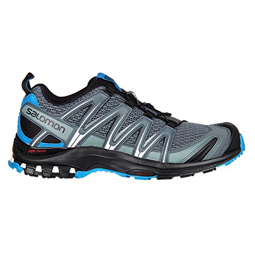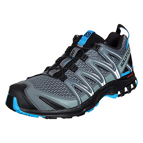 Der Salomon XA PRO 3D ist ein Adventureschuh, der durch seine unglaubliche Passform, verbesserte Haltbarkeit und überaus verlässlichen Grip überzeugt. Leichtes, atmungsaktives und abriebfestes Material steht für beste Belüftung und Komfort. Der Schlammschutz ist ein schützendes Material entlang der Basis des Schuhs. Durch die Kombination unterschiedlicher Contagrip Gummihärten bieten die Außensohlen den perfekten Mix aus Griffigkeit und Haltbarkeit. Das Sensifit-System umschließt den Fuß für einen präzisen und sicheren Sitz. Eine leichte, geformte EVA-Zwischensohle und die OrthoLite Einlegesohle bieten Dämpfung und Stabilität. Dank des Quicklace Schnürsystems mit reibungsfreien Ösen kannst du mit nur einem Zug die richtige Passform einstellen. Die selbstlösende Schnürung verhindert außerdem das Verknoten oder Hängenbleiben an Gegenständen.