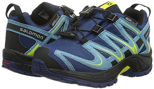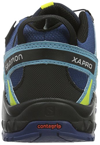Salomon XA PRO 3D WP. Robuste Multifunktionsschuhe mit wasserdichter und atmungsaktiver Aquashield-Technologie; Obermaterial aus Textil mit Synthetik-Overlays; Zunge und Schaft sind weich gepolstert; Zuglasche; Textilfutter; herausnehmbare Einlegesohle; Non Marking-Contagrip-Außensohle mit Profil.