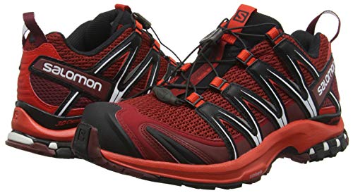 Der Salomon XA PRO 3D ist ein Adventureschuh, der durch seine unglaubliche Passform, verbesserte Haltbarkeit und überaus verlässlichen Grip überzeugt. Leichtes, atmungsaktives und abriebfestes Material steht für beste Belüftung und Komfort. Der Schlammschutz ist ein schützendes Material entlang der Basis des Schuhs. Durch die Kombination unterschiedlicher Contagrip Gummihärten bieten die Außensohlen den perfekten Mix aus Griffigkeit und Haltbarkeit. Das Sensifit-System umschließt den Fuß für einen präzisen und sicheren Sitz. Eine leichte, geformte EVA-Zwischensohle und die OrthoLite Einlegesohle bieten Dämpfung und Stabilität. Dank des Quicklace Schnürsystems mit reibungsfreien Ösen kannst du mit nur einem Zug die richtige Passform einstellen. Die selbstlösende Schnürung verhindert außerdem das Verknoten oder Hängenbleiben an Gegenständen.
